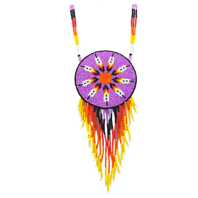 TRIBAL ROOTS Large Medallion Necklace - Lavender Feather