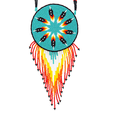 TRIBAL ROOTS Large Medallion Necklace - Teal Feather