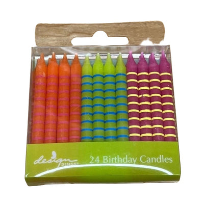 DESIGN Striped Candles - Orange/Yellow/Pink - 24-Pack