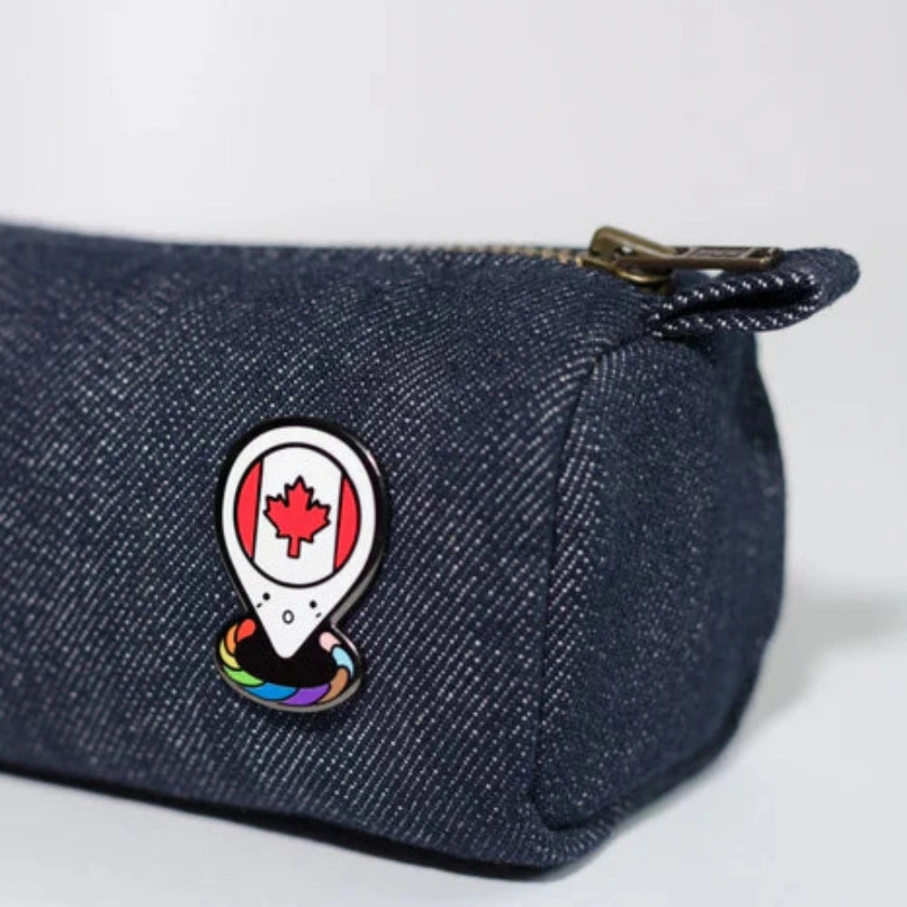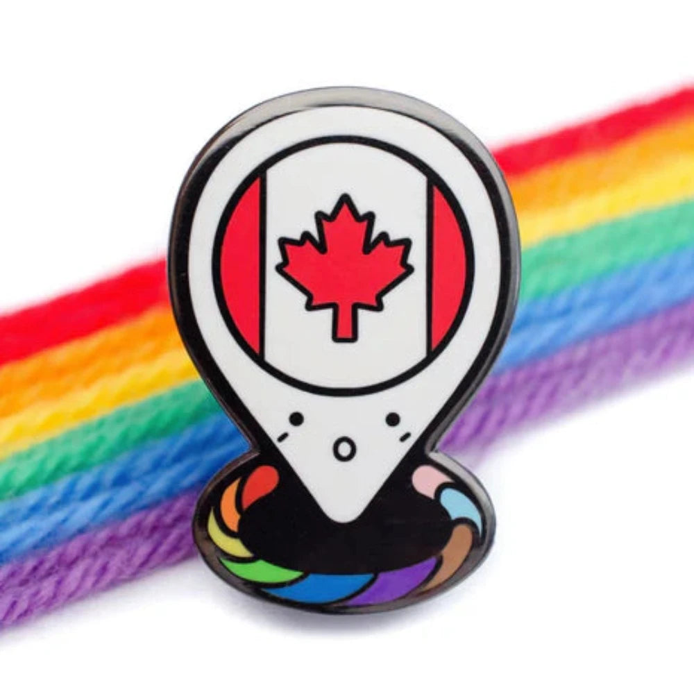 The Canada LGBTQ+ Location Lapel pin is designed with the inclusive rainbow pride flag colors including 6 rainbow colors with black, brown, white, light blue and pink to represent all marginalized members of our LGBTQ+ community of colour, and transgender individuals. Wear this location pin to show where you are from proudly!