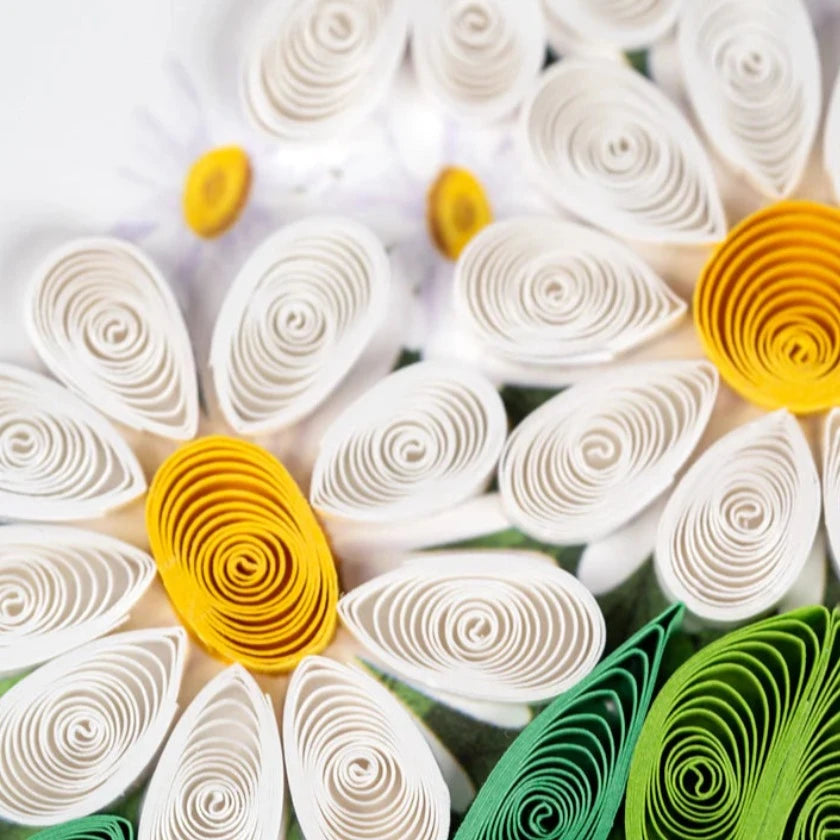 Nothing beats fresh picked handcrafted daisies from the garden. You will make your friends day when you gift the this beautiful quilled daisy floral arrangement.