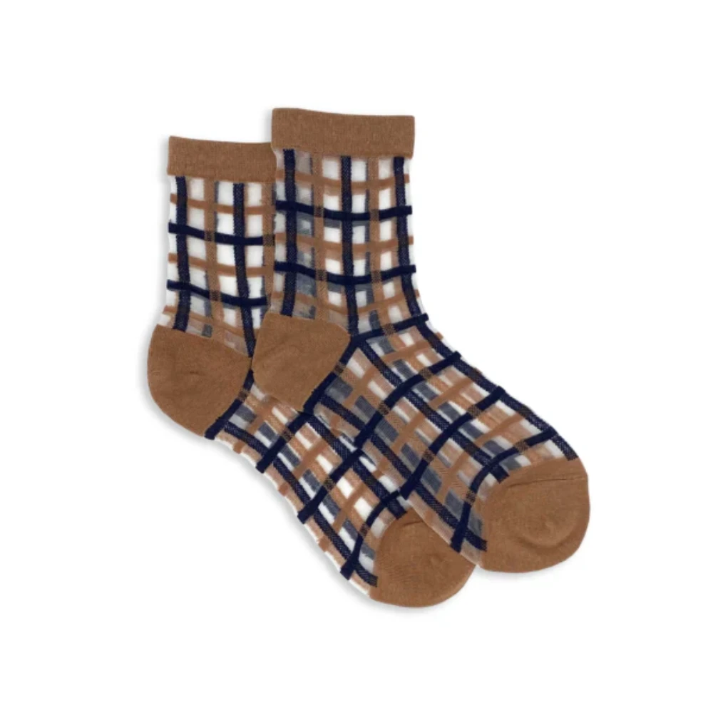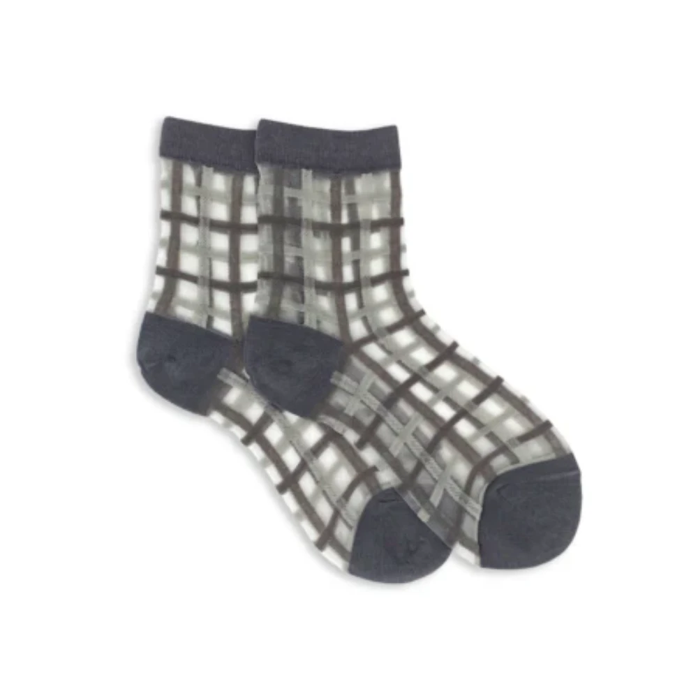 Sheer anklet with plaid pattern. Wear with sneakers, heels or sandals.