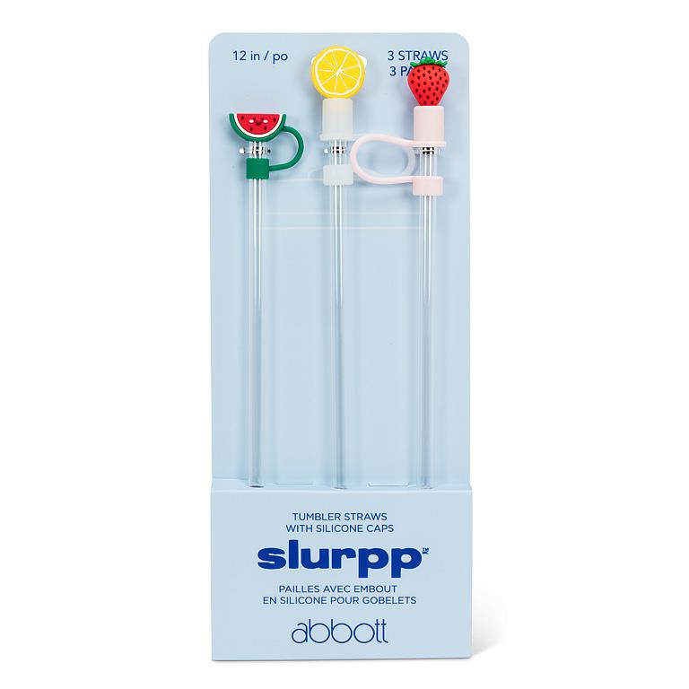 Introducing the Jumbo Straws with Fruit Caps in a set of 3. Crafted from silicone, the caps make excellent drink markers. Ideal for tall glasses or party drinks, they elevate any beverage experience with style and practicality, making them a fun addition to gatherings or everyday use.