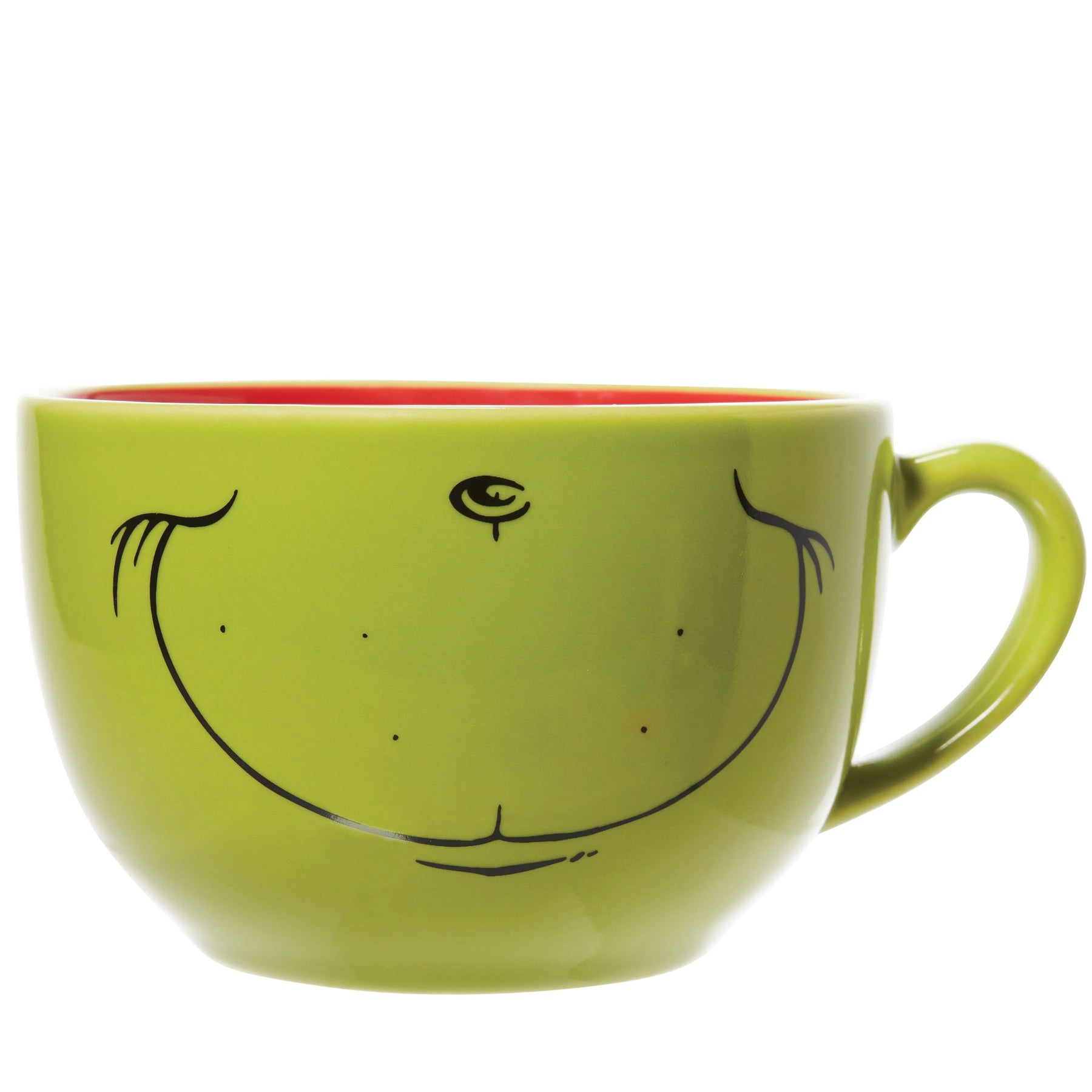 Let your Grinchy side show with this double-sided 18 oz ceramic mug. Display the frown side or the smile side so everyone knows your mood. This generous oversized mug is perfect for warm lattes and hot cups of cocoa.