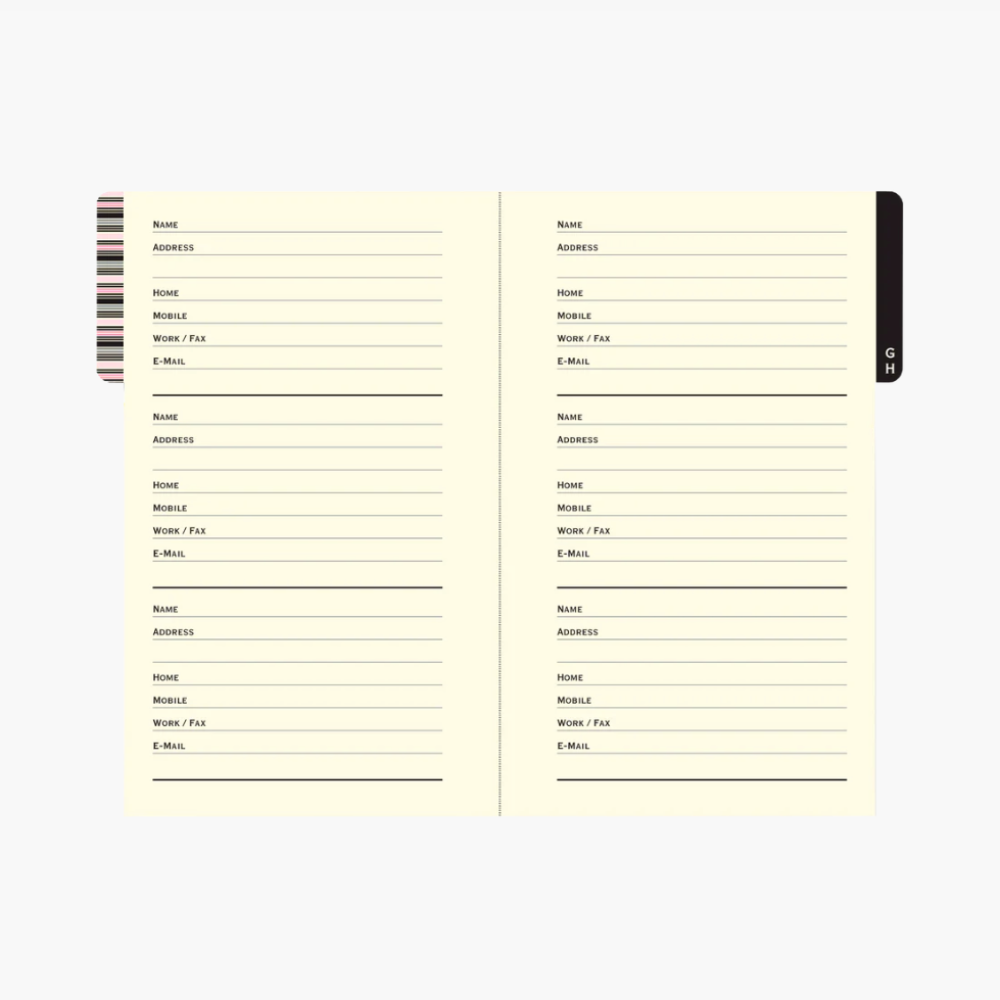 • Elegant pocket-sized personal address book has space for more than 400 contacts.