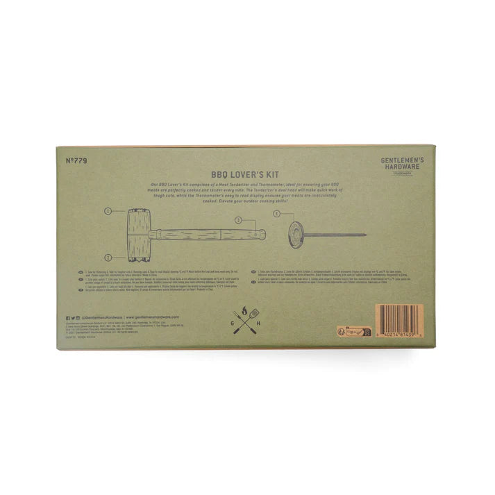 Upgrade your grilling gear with our BBQ Lovers Kit. This set includes a meat thermometer and dual head tenderizer perfect for preparing a cut above the rest. With a classic style and quality build, these tools were made to make your next BBQ legendary.