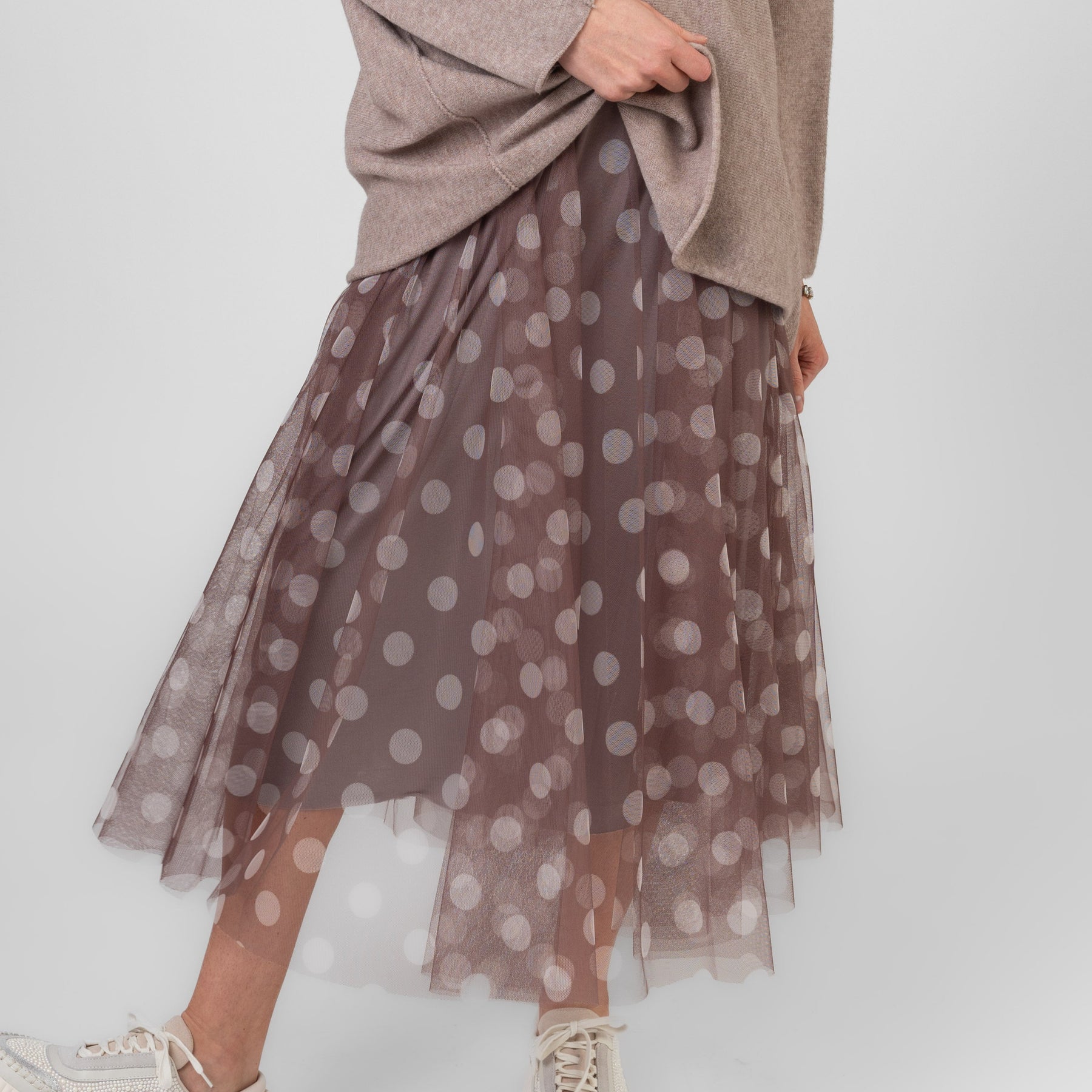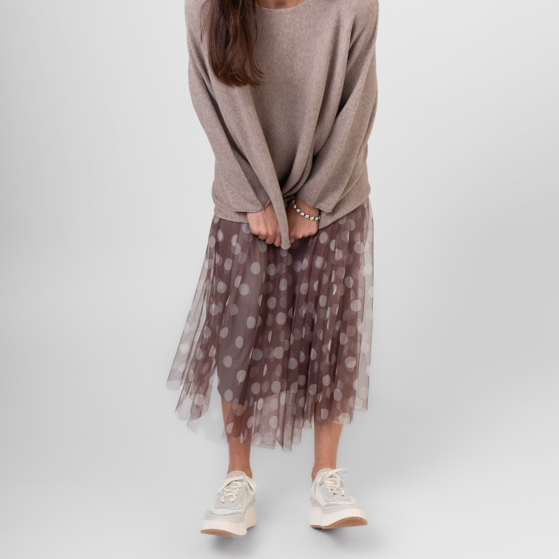 ME&GEE Full Length Tulle Dot Skirt | Taupe