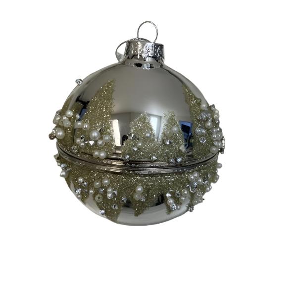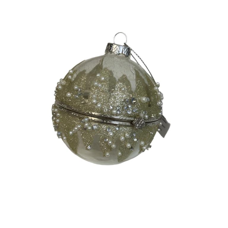 This PEARL and glitter Glass Gift Box Ornament is the perfect addition to your holiday decor. Made from high-quality materials, this ornament adds a touch of elegance with its shimmering pearl and glitter accents. Its unique gift box design makes it a versatile decoration that can be displayed on a tree or as a standalone piece. Add a touch of sophistication to your home with this stunning ornament.